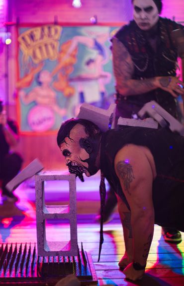 At Dead City Circus Sideshow, we combine traditional sideshow acts with modern underground vibes. Our performances are designed to captivate audiences with high energy, dark themes, and jarring visuals that leave a lasting impression.